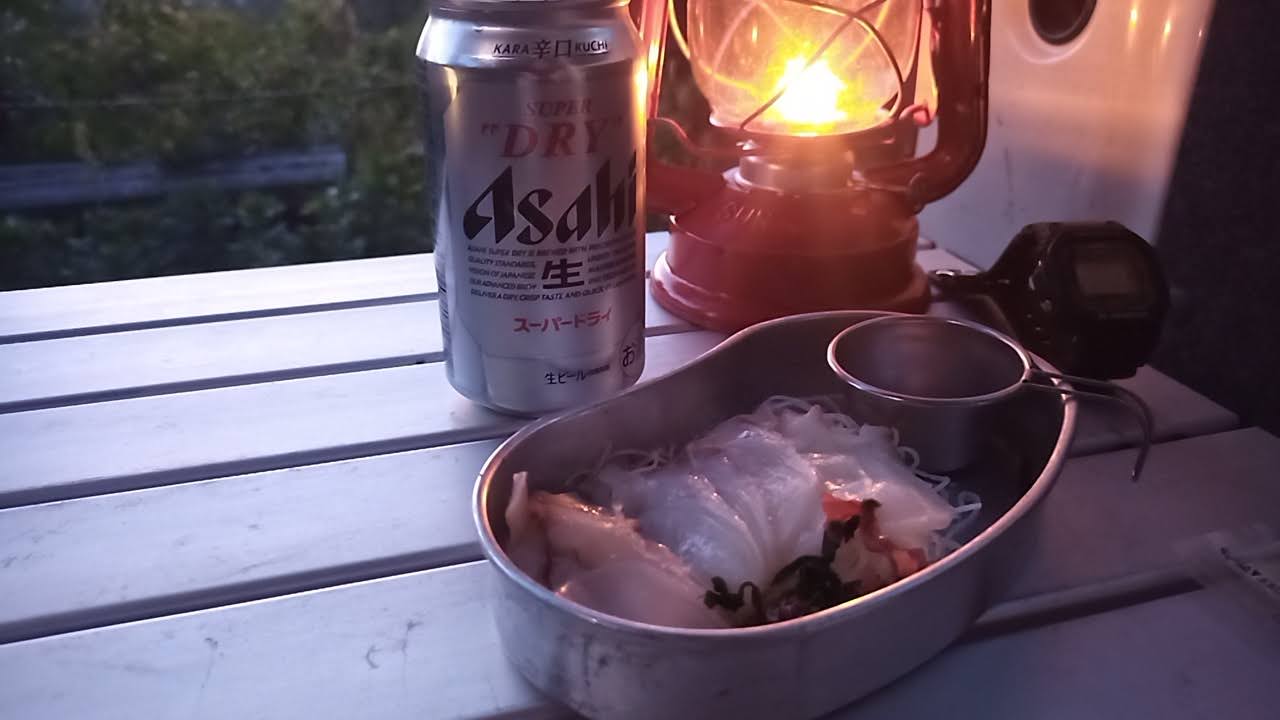 ミズダコの刺身でキャンパーイ。