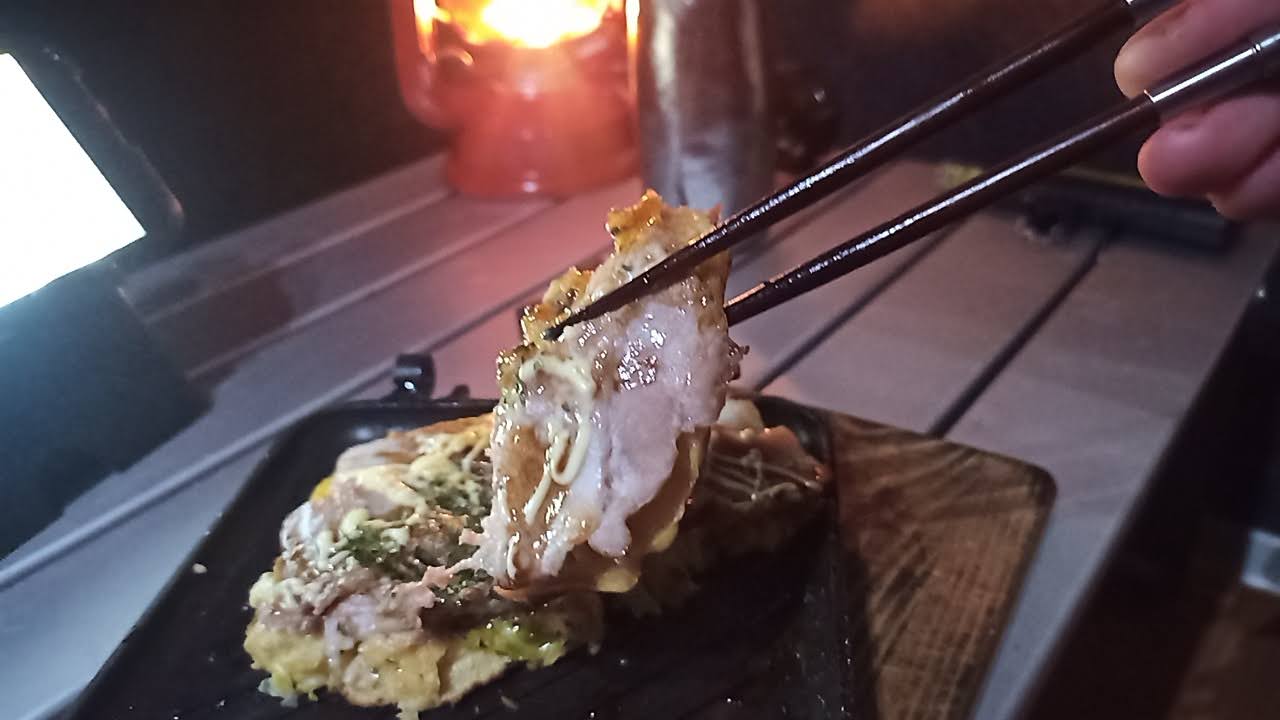 【キャンプ】たまご入りvsたまご無し!スキレットお好み焼き対決
