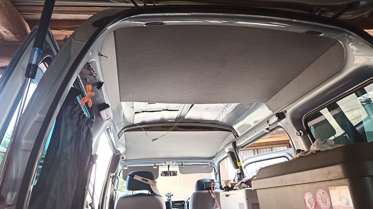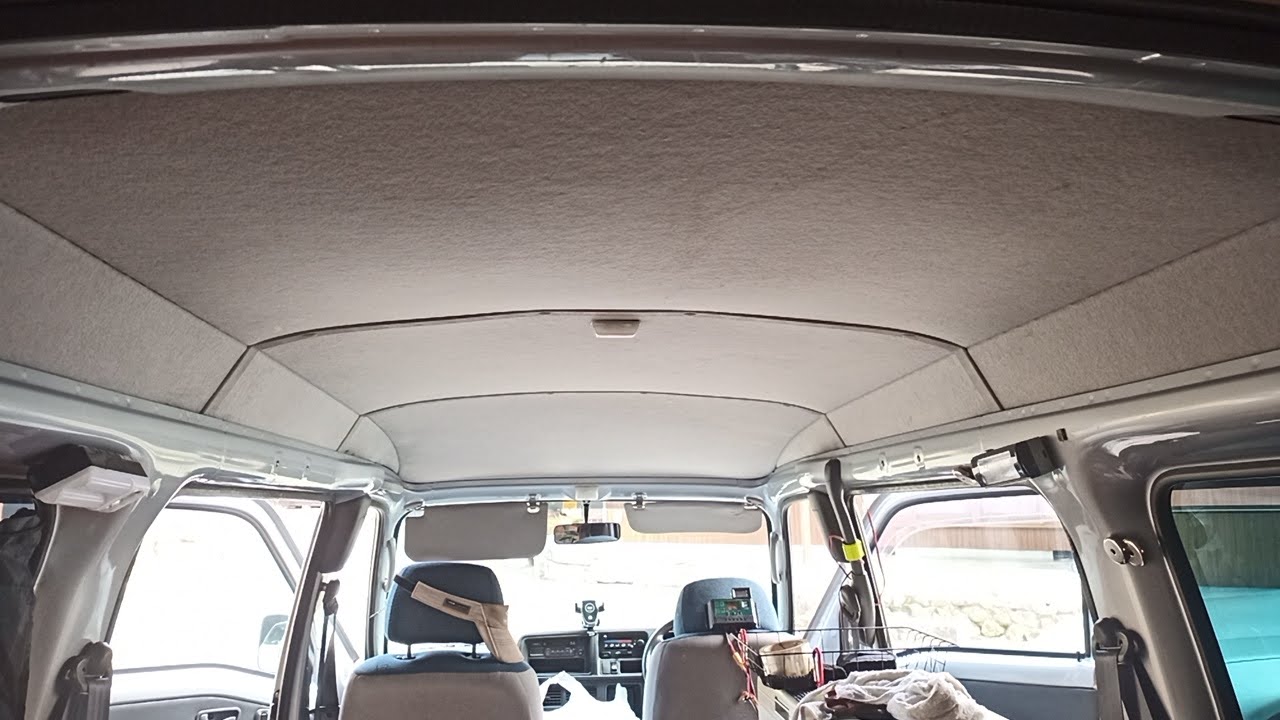 まずは、車内の内張を剥がします。 サンバーの場合は、内張材が3分割されています。