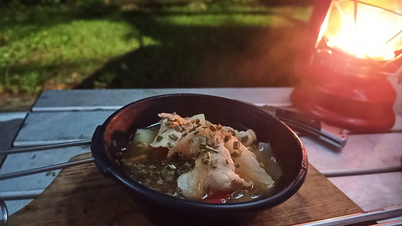 キャンプのスタート時は気温24度でしたが、夜半過ぎには雨。 室温も17度まで低下していました。
