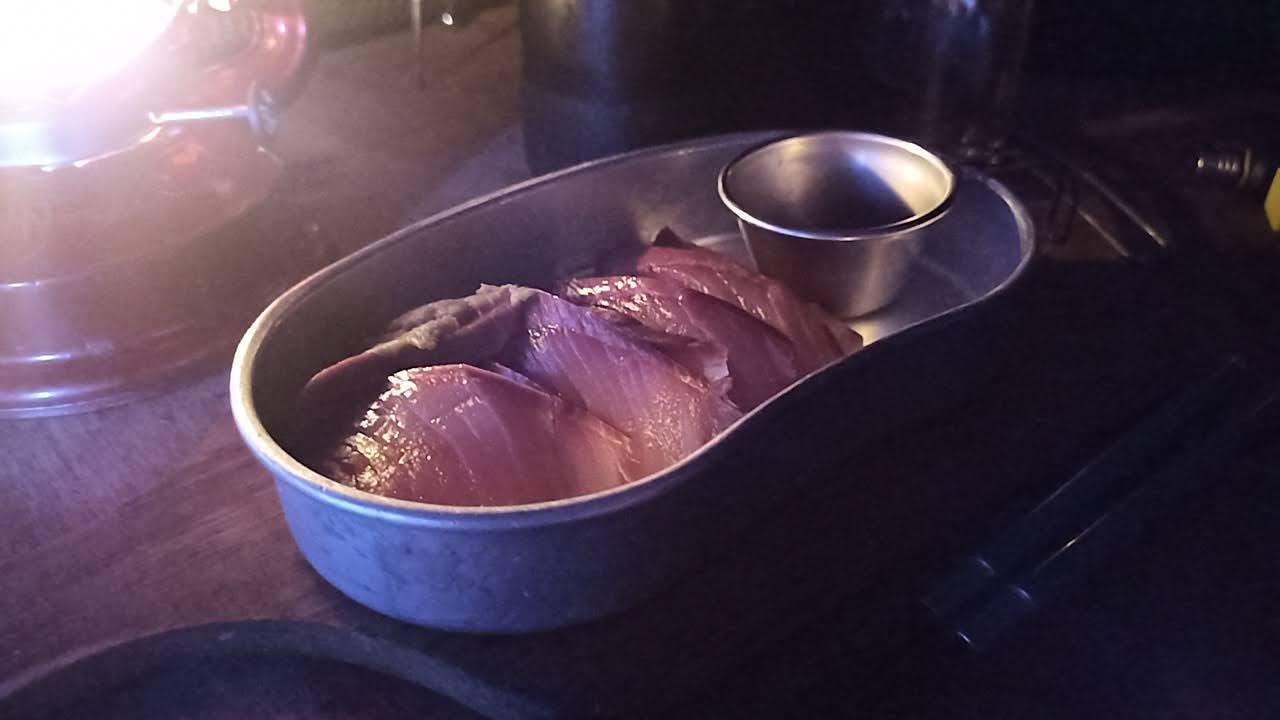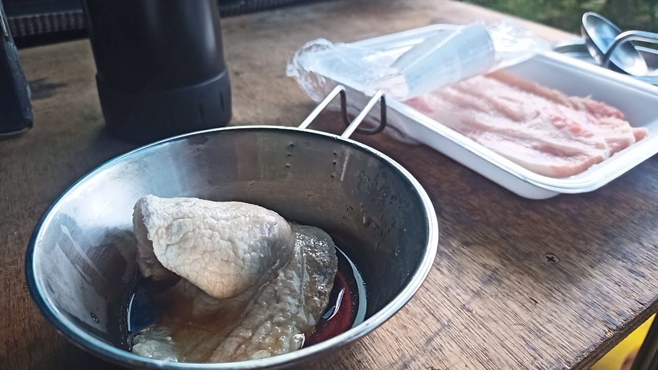250円と激安のため、「あん肝」が入っていませんでしたが満足のキャンプ飯。