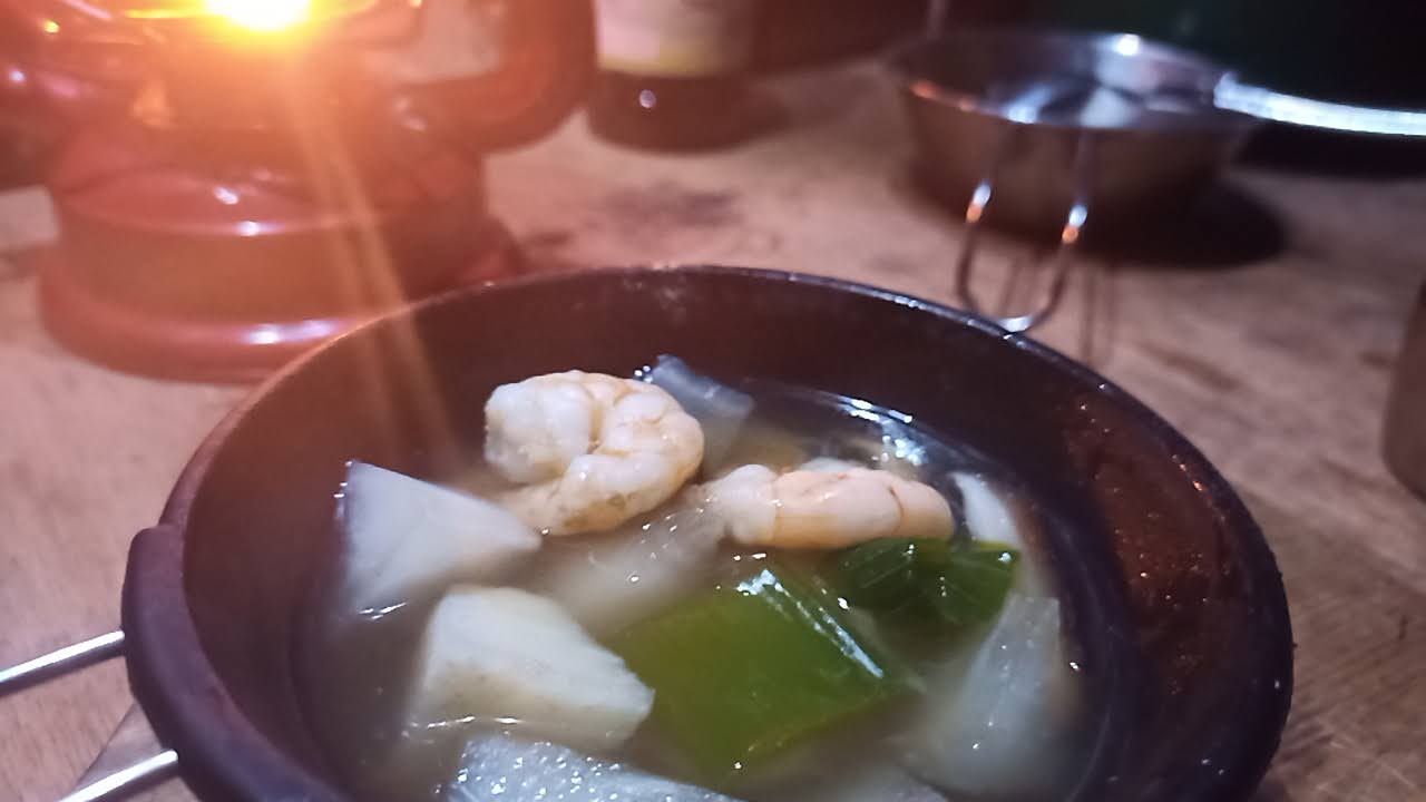 バナメイエビと里芋、長ネギのにホタテ出汁のスープ。