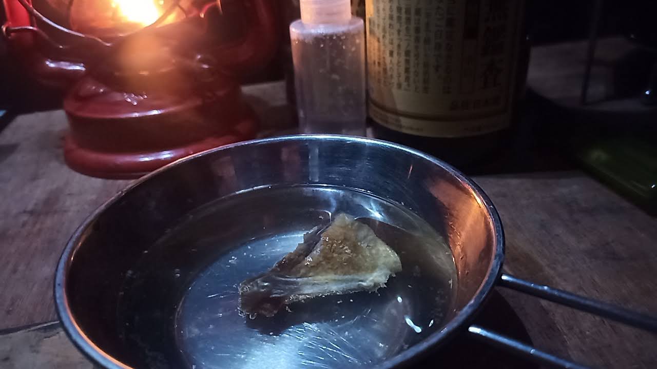 先日購入した「塩引鮭の焼き干し」を一緒に入れて余熱で温めます。