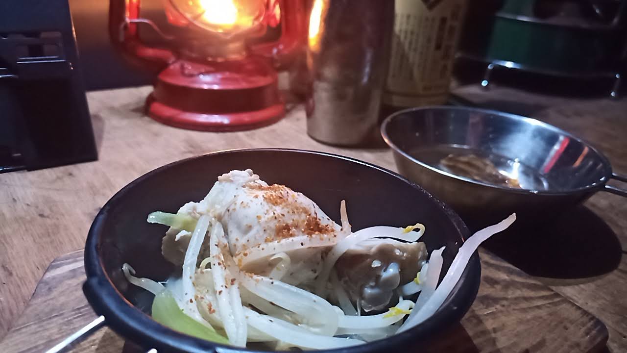 残った鶏ガラスープに生麺を加えて鶏ガララーメンの完成