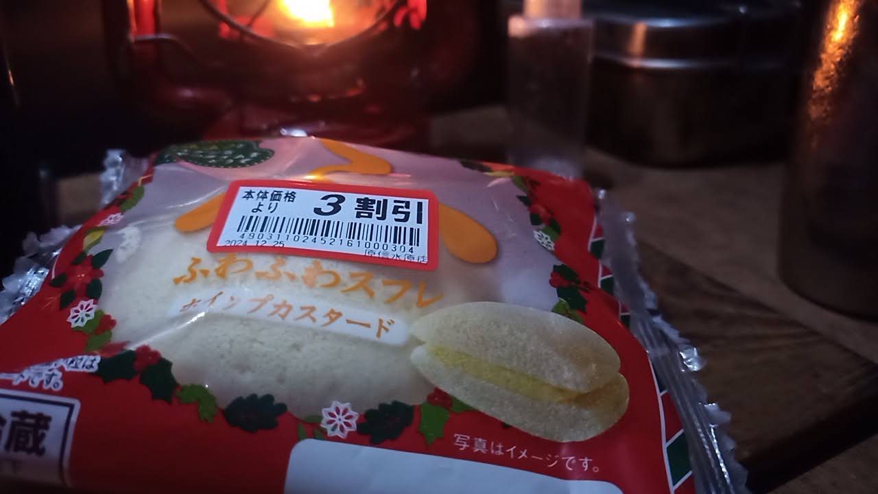 今夜のキャンプデザートは「ふわふわスフレ」3割引きのシールに吸い寄せられてしまった・・・・