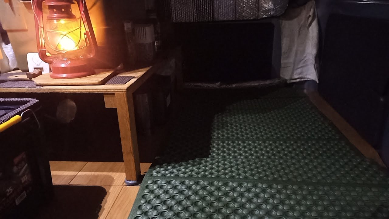 インフレーターマットと寝袋、そして電気毛布でポカポカ就寝です。