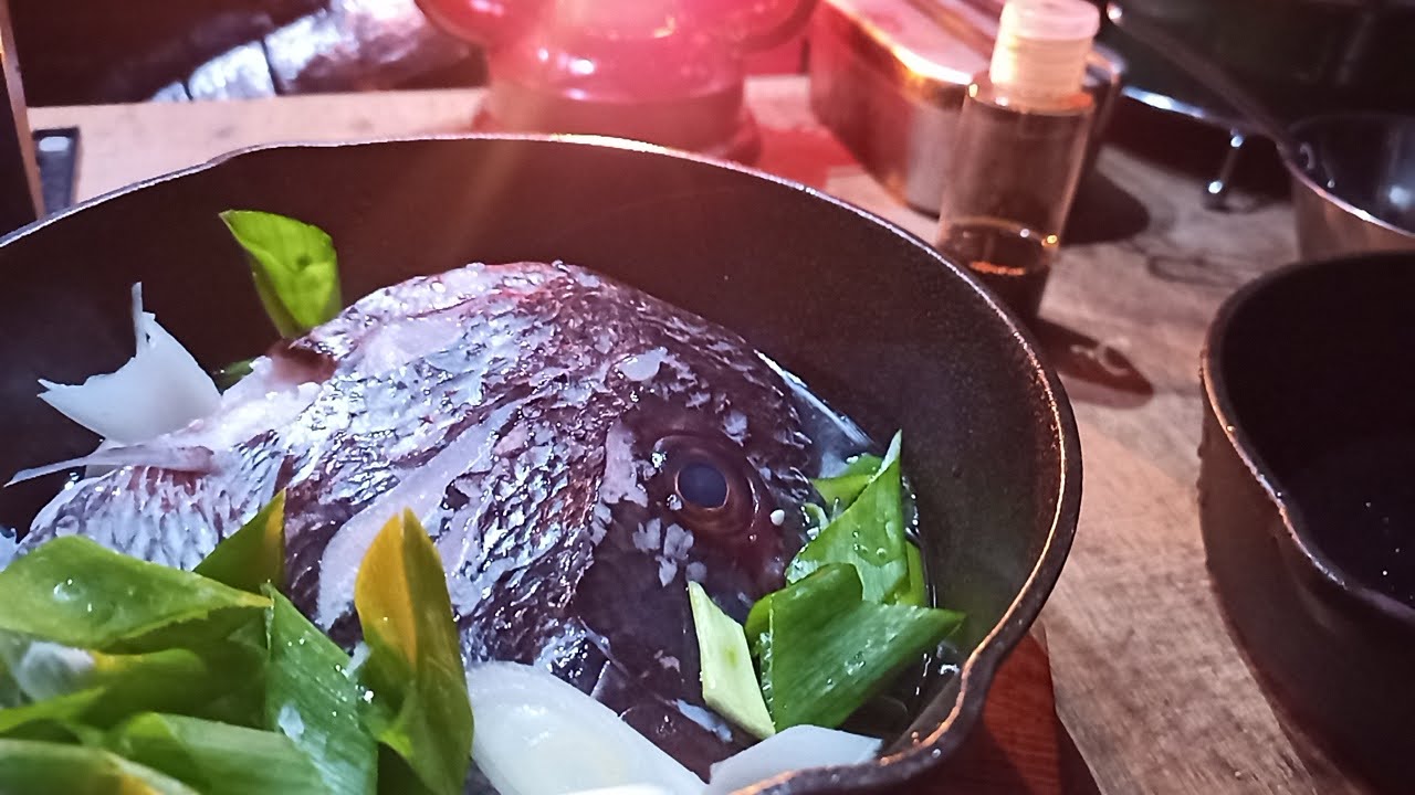 鯛のアラ、長ネギ、味付けは天然塩と日本酒のみです。