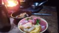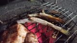 ビンチョウマグロの刺身を堪能中にシイタケを弱火でコトコト。
