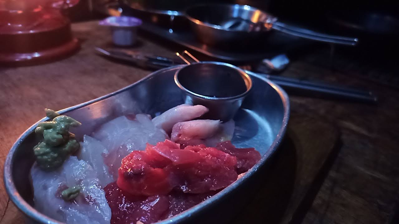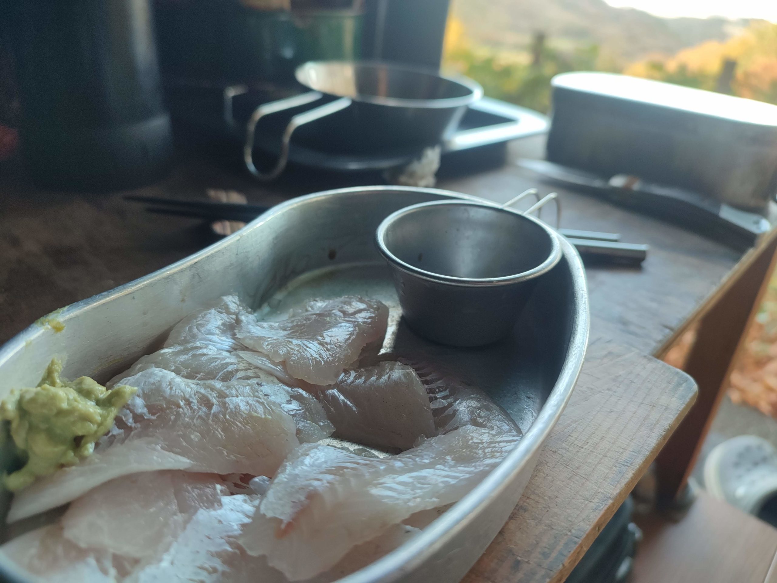 ノドグロの刺身でキャンパーい! と行きたいところですが、帰宅があるのでアルコールなし。 ノドグロの刺身500円。
